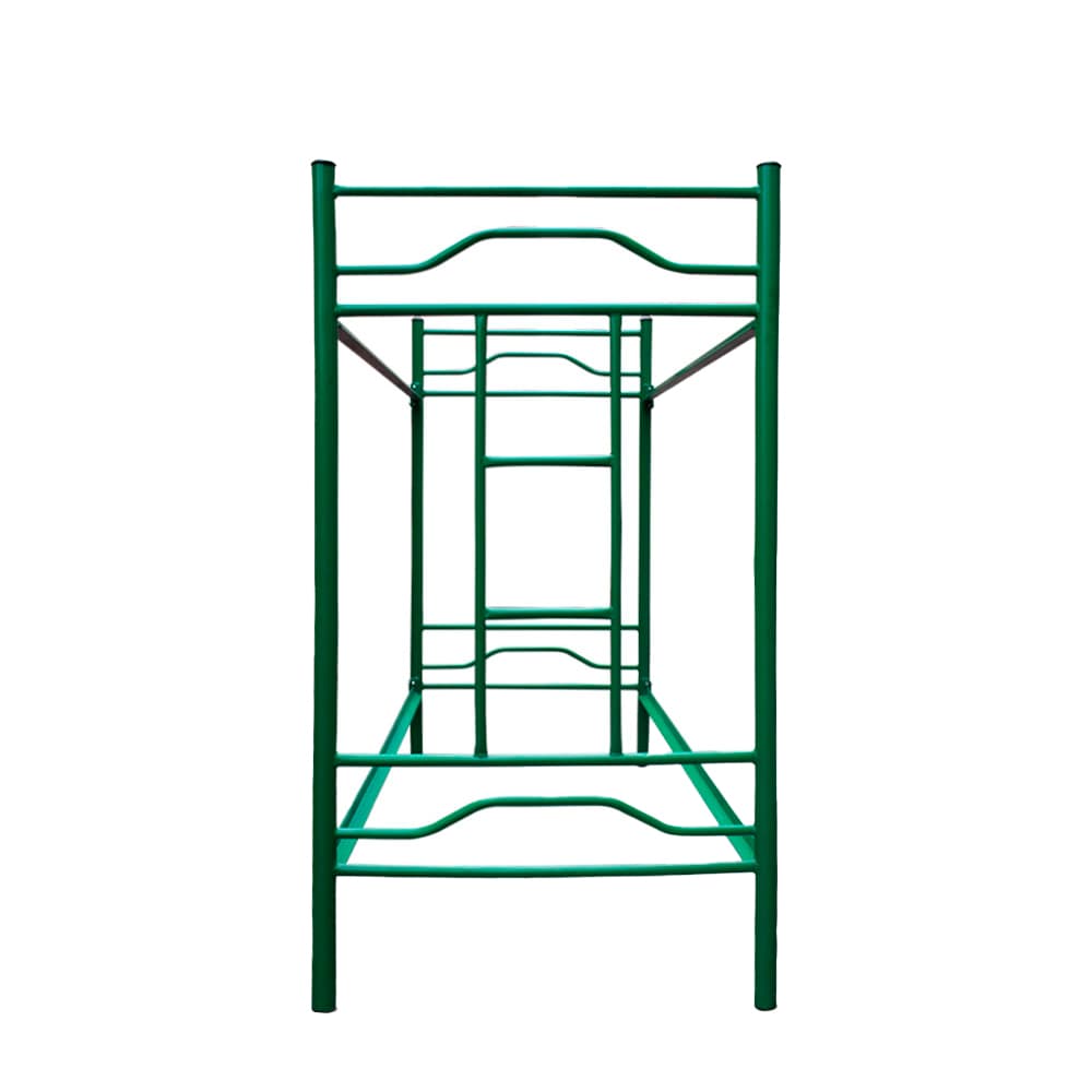 • Estructura: Tubo metálico redondo de 2 pulgadas, calibre 18. Acople plástico. Largueros en ángulo de hierro perfil L 1 1/2 x 3 /16 pulgadas. Escalera fija en el piecero.