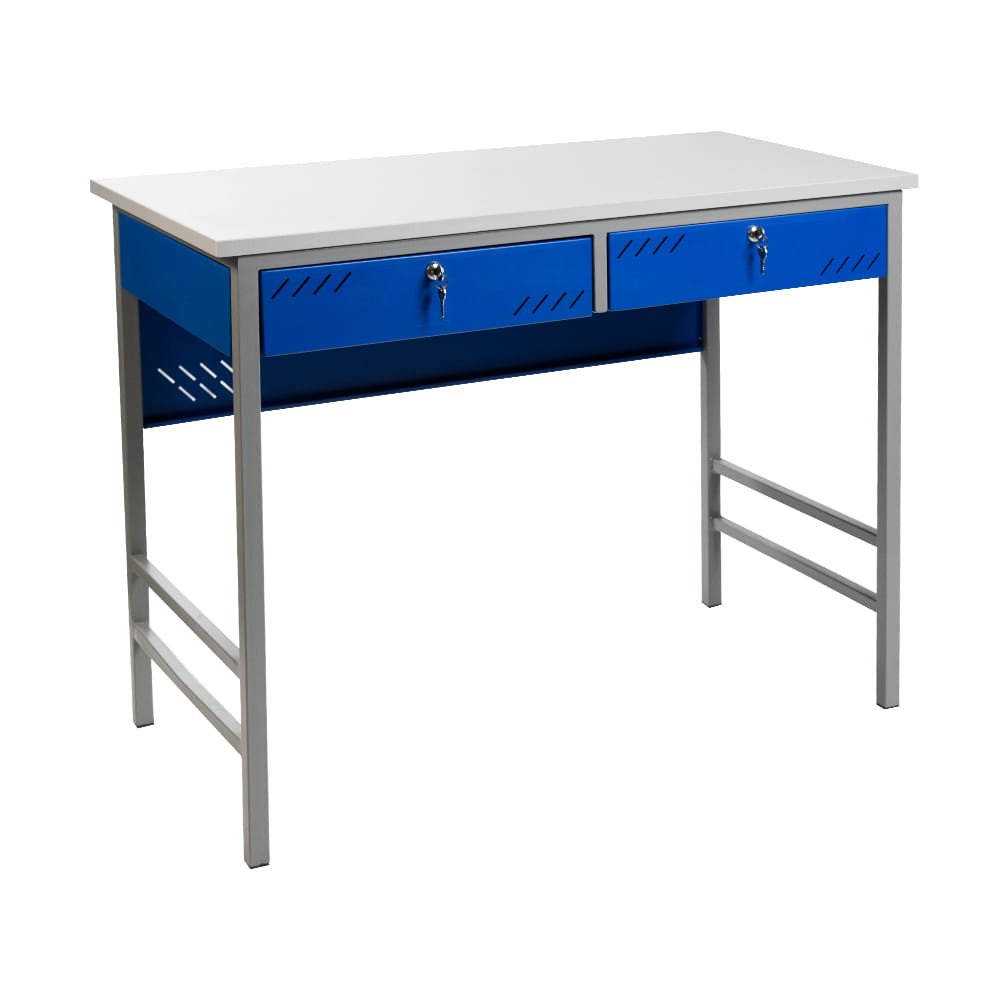 Este escritorio docente es perfecto para el trabajo diario de profesores en colegios, escuelas o universidades. Su diseño moderno y funcional incluye dos cajones con llave, ideales para guardar documentos, útiles escolares o artículos personales con total seguridad.