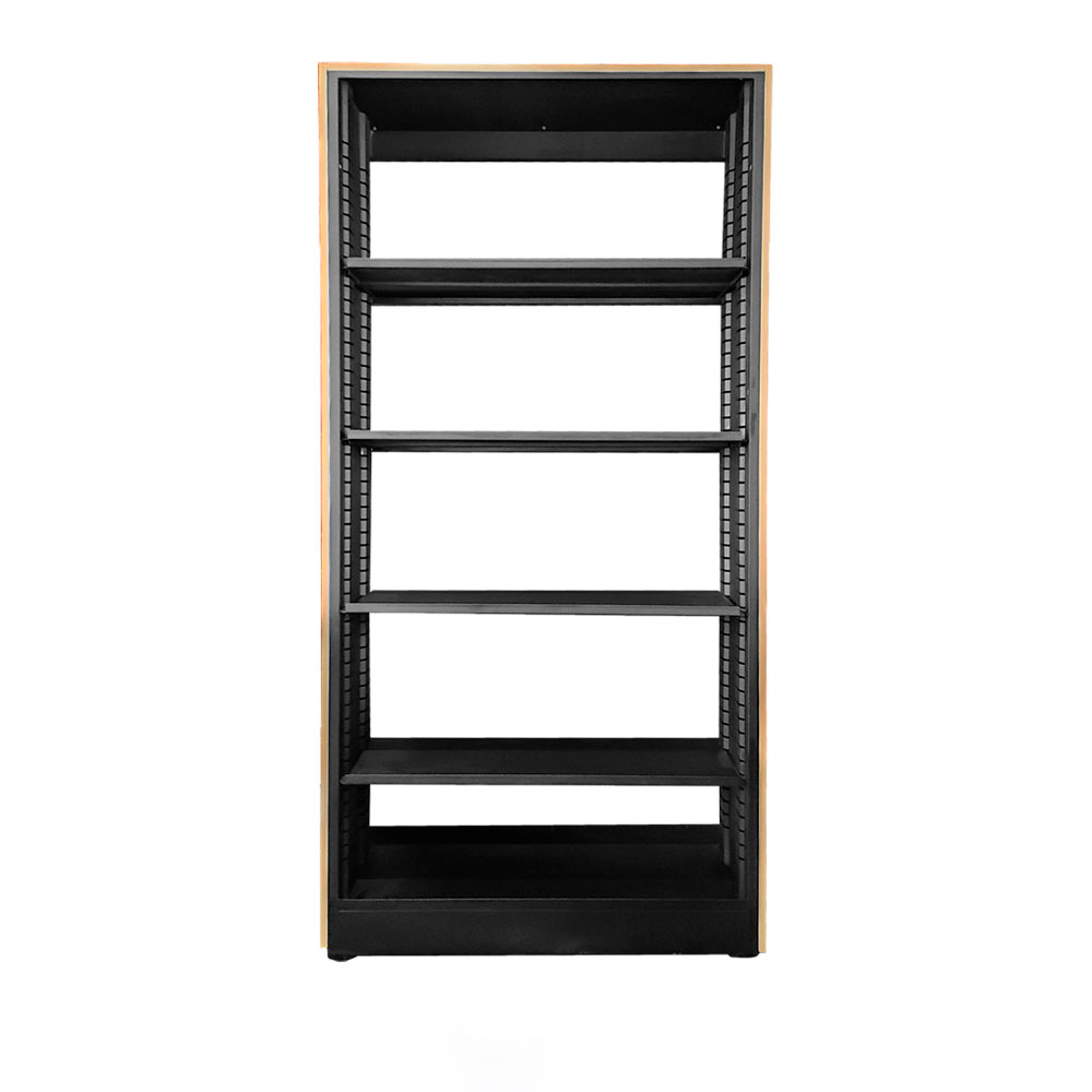 • Acabados: Tapas en madera de 19 milímetros. Tres (3) entrepaños graduables con posición recta o inclinada. Estructura en Microtex negro.