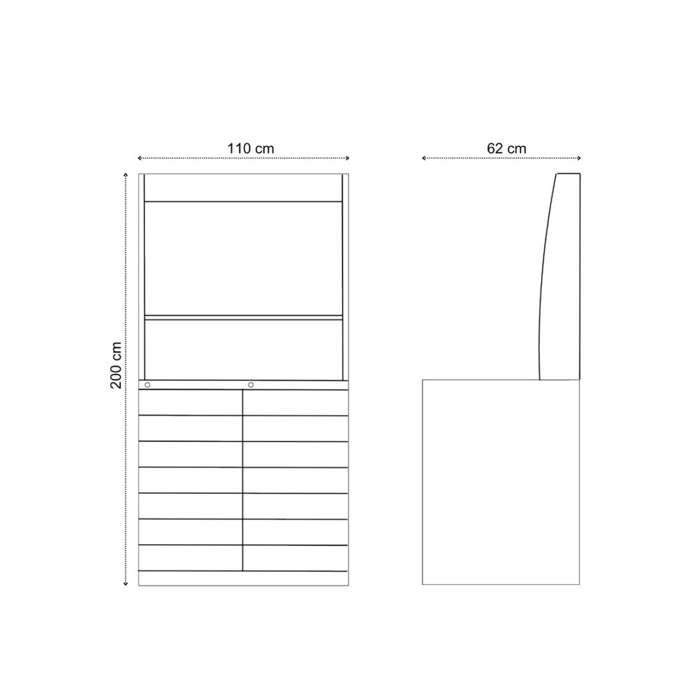 • Medidas exteriores: 200 cm alto x 110 cm ancho x 62 cm fondo