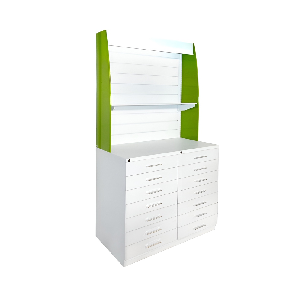 Organiza y exhibe con estilo. Nuestra Torre Gavetera de Exhibición superior combina almacenamiento y visibilidad para tus productos o herramientas. Ideal para entornos comerciales o industriales que requieren orden y presentación en un solo mueble.