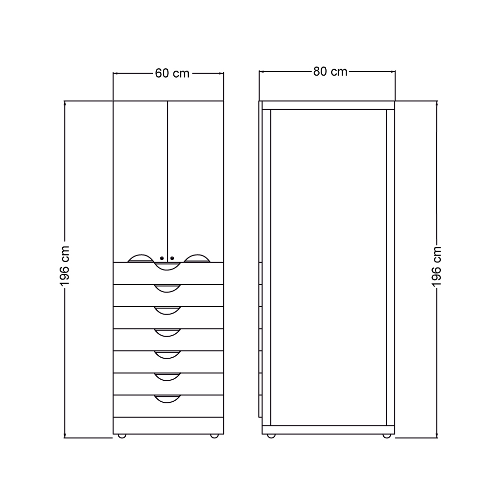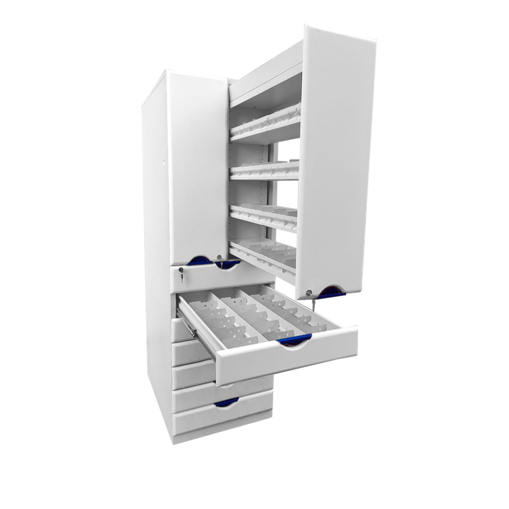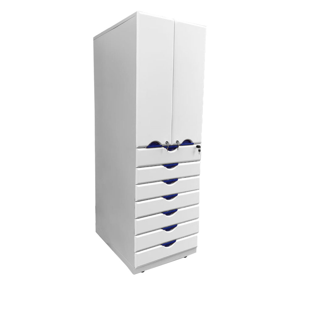• Acabados: Siete (7) cajones inferiores, tres (3) divisiones fijas y cada división cuenta con tres (3) separadores (hasta 18 divisiones por cajón). Frente de las gavetas está elaborado en madera MDF.